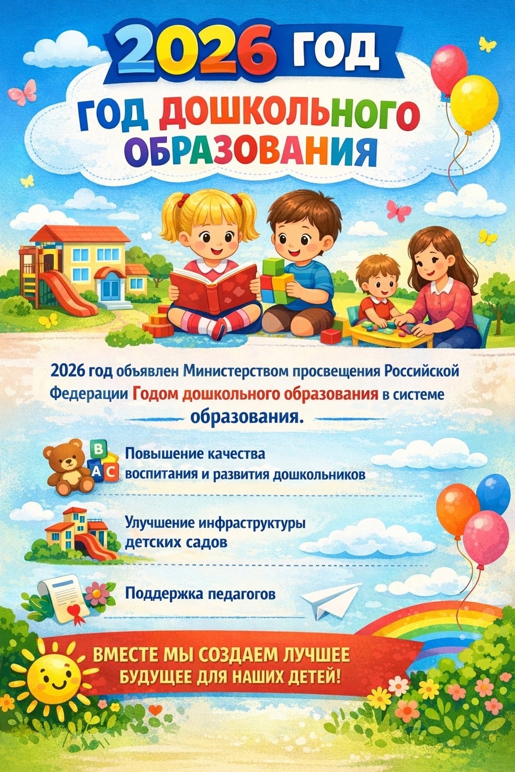 Наш детский сад – это уникальная система, которая обеспечивает заботливый уход, питание, воспитание, обучение и оздоровление детей дошкольного возраста. Ни одна система не выполняет столько функций одновременно.