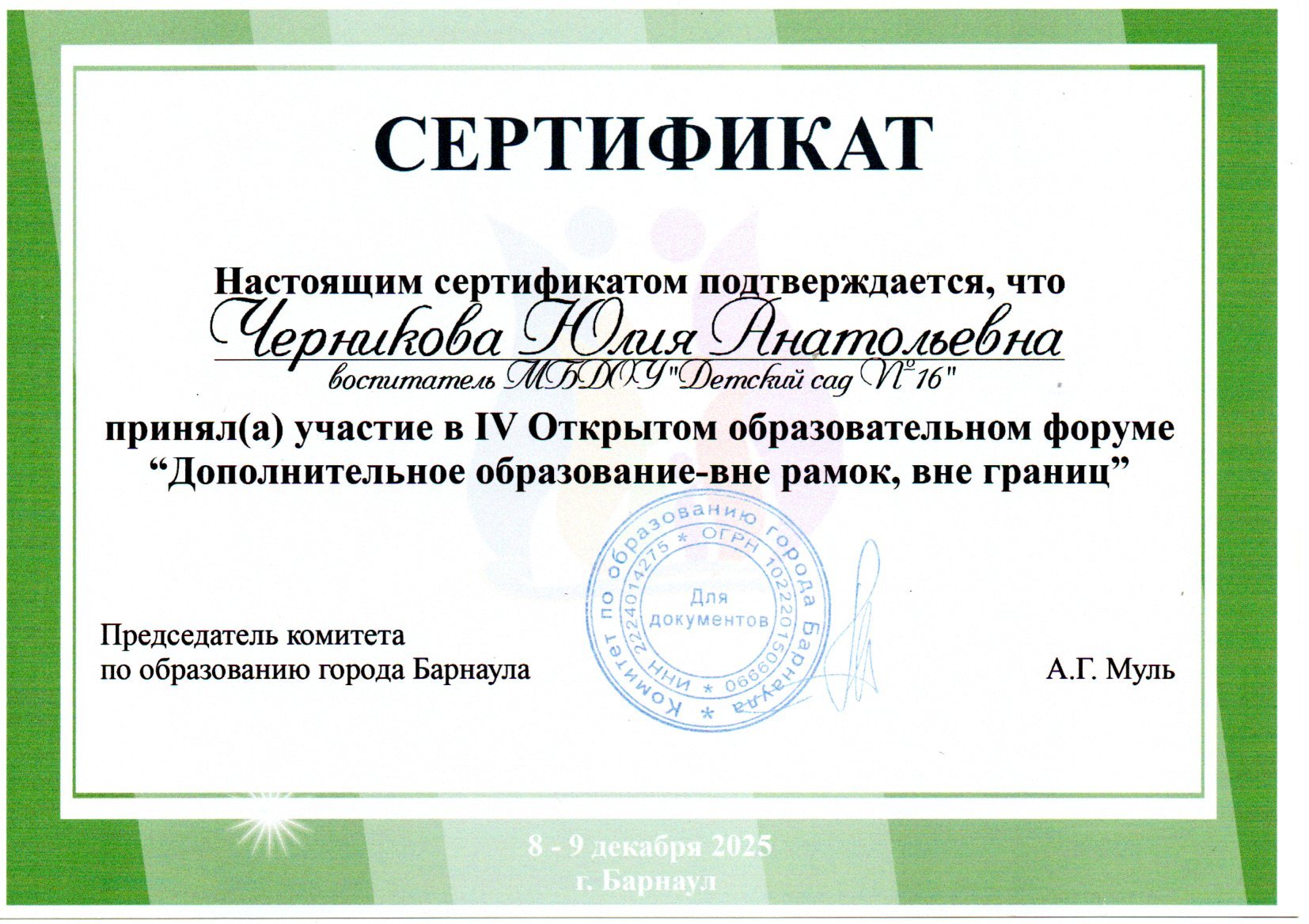 Черникова Юлия Анатольевна